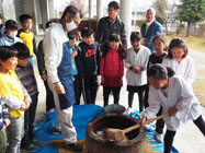 松川村農業委員会・村営農支援センターが主宰する安曇野まつかわ農業小学校はこのほど、収穫祭を松川小学校で行なった。大豆づくりに携わった同校の3年生71人が参加し、餅つきや活動発表などを通して、地域の人や自然の恵みに感謝した。 |