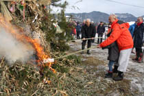 九日町では少子化などの影響で、約10年前からどんど焼きが途絶えている。宮田町が昨年11月、自治会長会をきっかけに参加を打診、交流が具体化した。来夏には九日町が若一王子神社の例祭に宮田町を招く予定だ。 |