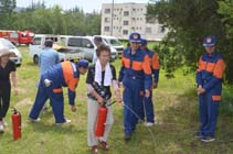 9月1日の「防災の日」を前に、大町市の大新田町自治会と自主防災会は24日、防災訓練を公民館などで開いた。通報や初期消火、避難、炊き出しなど公民館の火災を想定した訓練に住民約40人が参加し、災害発生時にとるべき行動について確認した。 |