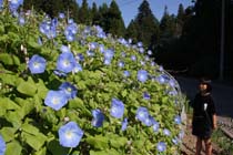 サル被害でアサガオ定植 松川 川口さん宅で見頃