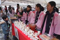 市内事業者が特産品を使って開発した食べ物や飲み物のテストマーケティングを行う「信濃大町おもてなしマルシェ」は本部の大町商工会議所駐車場で行われた。昨年に引き続き第2弾で6事業所の7品が出そろった。 |