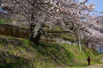 小谷村北小谷の島温泉や道の駅小谷周辺の桜並木が未頃を迎えている。暖冬のため例年より早く開花し、ここ数日の暖かさで一気に見頃となった |