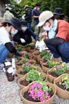 池田町役場職員でつくる職員労働組合(塩嶋康彰委員長)は23日、プランターに花を植栽し公共施設に置く植栽活動を行った。新型コロナウイルスの感染拡大防止のため執行部役員と新入職員の組合員に絞り縮小して実施した。美しいまちづくりを通して交流を深めた。役員や新入組合員、その家族を含めて約20人がマスクを付けて参加。 |