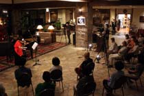 例年白馬村で若手演奏家が一流音楽家の指導のもと演奏を磨いていた「NAGANO国際音楽祭in白馬」の講師を務める音楽家によるミニコンサートが8月28日、同村和田野の白馬東急ホテルロビーで開かれた。新型コロナウイルスで今年の音楽祭が開かれない状況の中でも白馬の人々に音楽を届けたいと願い、実現した。コンサートの模様はケーブルテレビで9月に放送される。 |