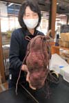 まるで妖怪アマビエ? 池田町ハーブセンター 巨大サツマイモ展示
