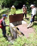 村内から8人が参加。全長8`のうち、昭和7年に建立された「水神様」から土谷諏訪神社、太田のせぎ払い口までの約7`を歩いた。 |