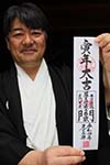 大町市常盤の須沼神明社で17日、新年の訪れに備え一年のけがれをはらう神事「師走の大祓おおはらい式」が行われた。新型コロナウイルスの感染防止を願う「大吉札」など縁起物をおはらい。二年参りや初詣で参拝者に配布する。 |