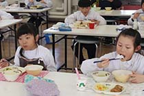 市内三日町の農業「久保屋」が丹精込めて作った有機無農薬米を、同校の小中学生全94人が給食として食べた。米の品種は長野県で生まれた「ゆめしなの」で、艶のあるもっちりした炊きあがりだった。 |