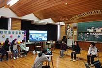 大町市の八坂小学校で9日、「6年生を送る会」が開かれた。コロナ禍のため本年度は、5・6年生は対面で、1年生から4年生はリモート中継での3密を避けた方式で実施。一堂に会しての全体交流はかなわなかったが、5年生が中心となって工夫を凝らした進行で、6年生にこれまでの感謝の気持ちを伝えた。 |