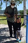 大町市美麻青具の道の駅「ぽかぽかランド美遊」内にある「花まめや」前で6月29日、「お山のおにくのピクニック」(にくぴく)が開かれた。ジビエ肉料理の販売や各種ワークショップで賑わった。 |