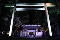 大町市は17日から、ライトアップイベント「光の幻想」を社地区の国宝・仁科神明宮で開催している。照明に照らされた拝殿と三ノ鳥居が闇夜に浮かび、灯ろうの淡い光が参道に並ぶ、幻想的な光景が来場者を楽しませている。 |