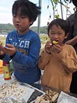 池田町の小中学生を対象にした町教育委員会とPTAによる協働活動「土曜ふるさとクラブ」のひとつ、「いけだ子どもオーガニッククラブ」は22日、会染花見のほ場で収穫祭を開いた。畑で育ててきた野菜を調理し、秋の味覚を味わいながら、一年の恵みに感謝した。 |