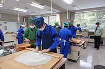 大町市八坂中学校の3年生が24日、総合学習の一環で取り組んでいたそばに関する授業の集大成となる、そば打ちを体験した。地元の有志でつくる「元氣会」の会員の北澤千代司さんと渡辺恵子さんを講師に自分でそばを打ち、伝統食の奥深さにふれた。 |