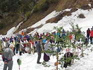 夏山の北アルプスの安全祈願を兼ねたイベント「第66回針ノ木岳慎太郎祭」が6月4日、日本三大雪渓のひとつ針ノ木雪渓(大町市)で開かれる。コロナ禍の影響で、記念登山や雪渓での祭典実施は4年ぶりとなる。小雨決行(順延なし)。申し込み期限は5月31日。