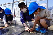 大町市常盤の近藤紡績所大町工場は10日、あすなろ保育園の年長園児を招き、綿の種まき交流を行った。園児専用の「あすなろハウス」で社員の指導を受けながら、協働で種まきを体験。交流を通じ、園児が地域の産業に理解を深めた。 |