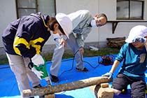 シイタケのコマ打ち体験 八坂小中4年生 森の豊かさ理解