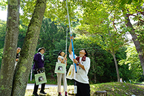 県環境保全研究所(環保研)と大町市の大町山岳博物館は1日、自然ふれあい講座「みんなで温暖化ウオッチセミのぬけがらを探せ!」を開いた。市内外から家族連れなど4組10人ほどが参加。博物館周辺の大町公園内でセミの抜け殻を集め、地球温暖化など自然の変化に関心を高めた。