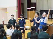 松川村の松川中学校(赤羽勲夫校長、生徒232人)で2日、人権教育PTA講演会(PTA教養部主催)が開かれた。清泉女学院短期大学教授で道化師の塚原成幸さん(56)=小布施町=が、「笑顔で築く信頼関係?ユーモアコミュニケーションのすすめ」と題して講演した。人間関係の中で必要なコミュニケーションと笑いの大切さを伝えた。 |