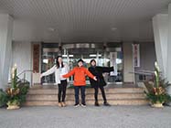池田町の地域おこし協力隊らが初めて自作したオリジナルの門松が、町役場の正面玄関にお目見えした。試行錯誤をしながら、伝統の風習に親しんだ。 |