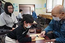 大町市のアルプス囲碁村推進協議会(勝野稔会長)は12日、子どもと大人を対象とした囲碁入門講座を東町のアルプス囲碁村会館で開いた。入会を希望する親子らが参加して、会員のアドバイスを受けながら囲碁のルールを学んだ。 |
