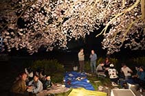 満開の桜巨樹 夜空に浮かぶ 大町 常盤清水で1日ライトアップ
