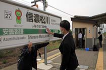 信濃松川駅では、生徒会役員を中心に近くから通う生徒や通学で電車から下車した生徒ら約20人が参加。ホームの駅名標や待合室の窓を拭いたり、ほうきをかけて周辺のごみを拾うなど、隅から隅まで磨き上げた。駅から町営バス通学の生徒も、バス下車後に学校周辺を掃除した。 |