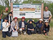 一畳サイズの看板には、草原が残された歴史的背景や時代に伴う変化と問題、草原に生息する希少種などを写真や資料を交えて紹介し、生態系を守るための禁止事項を明記した。 |