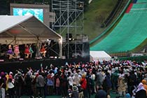 秋色に変わりつつある白馬村に総勢20組以上の豪華アーティストが集まる音楽イベント「白馬マウンテンフェスティバル」が20日と21日、白馬ジャンプ競技場をメイン会場に開かれた。あいにくの天候となったものの、初開催のフェスに2日間で延べ2000人ほどが来場。熱気が会場を包み、盛り上がった。 |