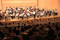 大町北小・南小・西小・東小と白馬北小学校のブラスバンドや金管バンド、白馬中・松川中・小谷中・大町中・高瀬中学校の吹奏楽部が参加。大町市内小学4校は再編を前に最後の4校参加となった。 |