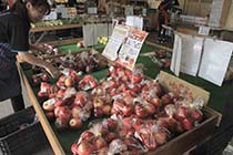 リンゴの収穫期を迎え、松川村の道の駅安曇野松川「寄って停まつかわ」には多種の村内産リンゴが店頭に並び、秋の人気の品となっている。11日と12日には、抽選会などの企画で来場者を歓迎するイベント「りんごまつり」が開かれる。 |
