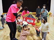 未就園児と保護者を対象にした池田町公民館の家庭教育学級「ポレポレ塾」は17日、「秋祭り」を交流センターかえでで開いた。14組が参加し、スタッフ手作りのお祭りを満喫した。 |