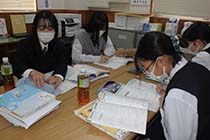 生徒たちは神事を前に、神社近くの内鎌公民館で丸山さんの指導を受けながらみっちりと勉強に打ち込んだ。神社で玉ぐしを捧げ、御朱印を受け取っていた。 |