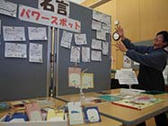 「名言パワースポット」と題するコーナーを設置した。利用者が、本の中から元気が出る言葉や台詞を吹き出しの紙に書き込み、本のタイトルとともに紹介する。小説や児童文学、絵本など、ジャンルは問わない。蔵書の中から、紹介された本と名言集なども併せて紹介する。 |