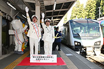 「90周年号」にぎやかに出発 JR大糸線 南小谷・中土駅で記念催し