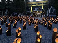 週末の境内照らす竹灯籠 安曇野 穂高神社「神竹灯」始まる