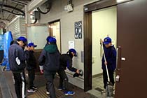 年内最後の活動として、小学校3年生から6年生まで11人の選手が参加。駅構内の改札前コンコースやホームでほうきやぞうきんをかけたり、ホームのトイレを掃除するなど、駅を磨き上げた。 |