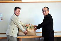 池田町の「食と農を考えるつどい」実行委員会は19日、秋に行われた「第22回お米コンテスト」に出展された米40`を、町社会福祉協議会へ寄贈した。町で生産されたおいしい米を、生活困窮者への福祉に役立てる。 |