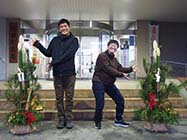 協力隊手作り門松お目見え 池田 年の瀬の彩り 役場正面玄関に
