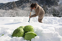 甘く熟成雪中キャベツ℃穫 13日ごろ販売開始 小谷で目ぞろい会