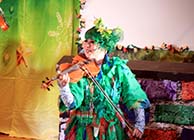 池田町創造館で4日、長野市在住のバイオリンパフォーマー・牧美花さんの半生をモチーフにした演劇「チュイチュイ 左手のバイオリン弾き」と本人が演奏するステージ「牧美花 その世界」が開かれた。 |