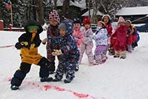 雪の園庭で4種目チャレンジ 小谷村保育園で雪上運動会