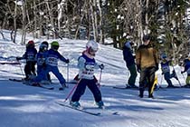 白馬村の白馬南小学校は4日、校舎西側にある裏山スキー場で毎年恒例のアルペンスキー検定を実施した。学校独自の級位取得を目指す伝統ある行事で、全校児童が参加。これまで練習してきた成果を発揮して検定に取り組んだ。 |
