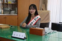 白馬村出身のタレントで村観光大使の国本梨紗さん(22)が24日、一日村長に就任した。書類決裁など業務を体験した他、村の取り組みや特産品などを発信。「自分が生まれ育った白馬で一日村長をさせていただく。村長という存在は理解していてもどのような業務をしているか触れることがなかった。一日笑顔で業務をしたい」と意気込みを見せた。 |