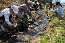 池田町会染花見の住民でつくる「花見ホタルの里づくりの会」(丸山昇代表)は3月29日、ゲンジボタルの幼虫を地区内のホタル水路に放流した。毎年恒例の行事で、地域の子どもたちが地元の名所に親しんだ。 |