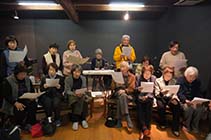 大町市大町の「高根町サロンなごみ会」は20日、「蔵の音楽館」で、昭和20年代に地域で踊られていた「高根音頭」の録音作業を行った。幻となっていた愛唱歌を、確かな形で次世代に残していこうという思いを一つに、心を込めて歌い上げた。 |