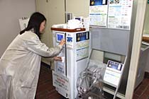 大町市とNTT東日本は8日まで、空気中の水分を取り込み飲料水を作る浄水器を市役所ロビーに試験的に設置している。大規模災害発生時の断水に備えた技術を市民に知ってもらい、防災意識の高揚につなげる考えだ。 |