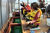 大町市平西海ノ口のキャンプ場&アウトドアクラブ「木崎湖POW WOW(パウワウ)」は3月29日、木崎湖でのワカサギ釣り体験会を実施した。大町市や白馬村から親子7人が参加。シーズンの終わりに、身近な湖で楽しめる釣りの魅力を満喫した。 |