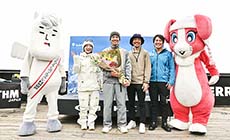 トークショーは白馬が誇るオリンピアン、ノルディック複合の渡部暁斗さん、弟の渡部善斗選手、フリースタイル・モーグルの上村愛子さんをゲストに迎え、丸山俊郎村長も出演した。