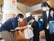 「桜仙峡あずき」赤飯でお祝い 「保存会」が新1年生に贈る 池田小・会染小で入学式