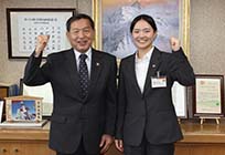 梨子田さんは2日、市役所を訪れ、牛越徹市長に派遣を報告。「日本の文化を体験できる場を設けたい。両国の橋渡しができるよう頑張りたい。帰国後は大町にも子どもの居場所をつくりたい」と抱負を話した。 |